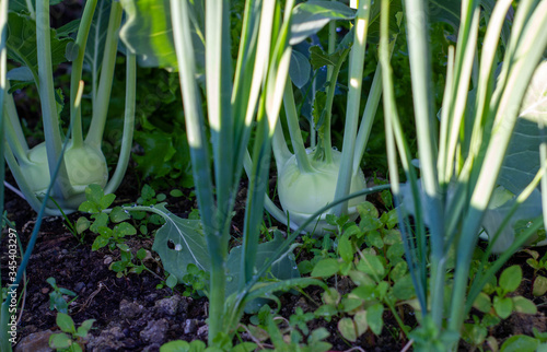 Fototapeta premium junge Kohlrabi im Frühbeet Gemüse