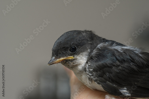 © H. Rambold, Obraz premium Junge Mehlschwalbe auf Hand