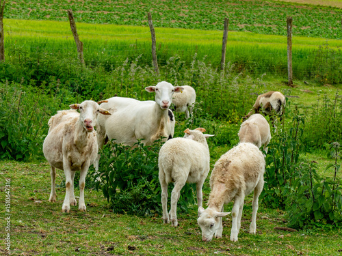 Obraz premium Junge Schafe grasen auf einer Weide