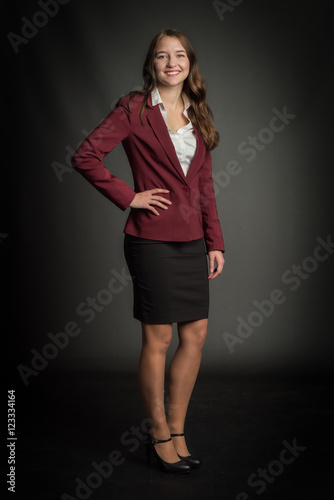Fototapeta premium Junge Studentin in Ganzkörperansicht - Junge Frau im Bussinessoutfit lächelt