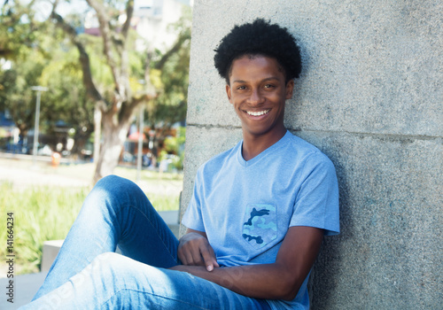 © Daniel Ernst, Obraz premium Junger Afrikaner entspannt im Park