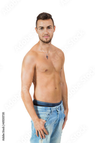 Fototapeta premium junger attraktiver erwachsener mann mit freiem oberkörper