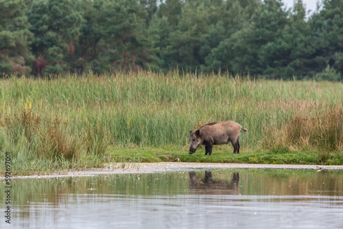 © Klaus, Fototapeta premium Junger Keiler am Teich