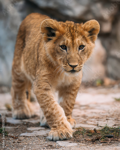 Fototapeta premium Junger Löwe erkundet seine Umgebung