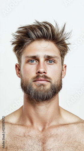 © Cedric, Obraz premium Junger Mann mit Bart und lässigem Look vor hellem Hintergrund