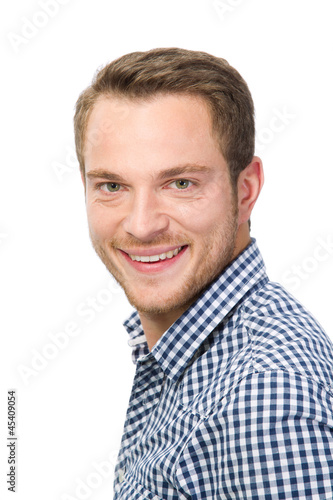 © Lifeisbeautiful, Obraz premium Junger Mann mit Karohemd