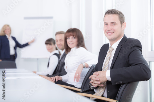 Obraz premium Junger Mann sitzt in einer Besprechung