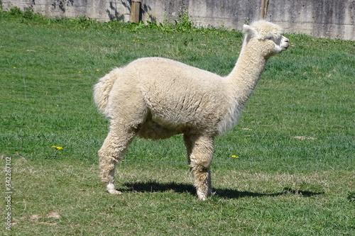 © Gerd, Fototapeta premium Junges Alpaka steht auf der Weide
