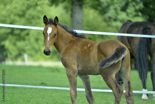 © R+R, Fototapeta premium Junges Fohlen mit Mutter auf der Weide
