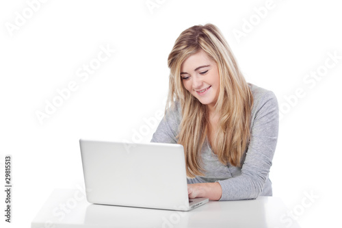 © contrastwerkstatt, Naklejka premium junges mädchen mit laptop