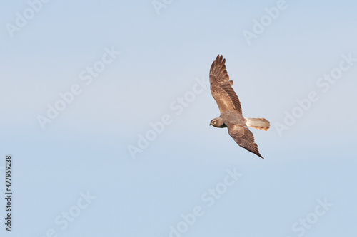Obraz premium Junges Männchen der Wiesenweihe (Circus pygargus) bei der Jagd