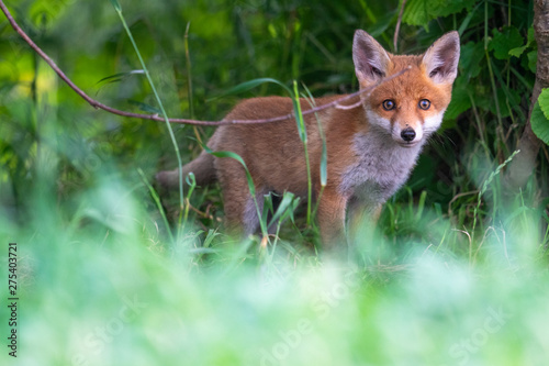 © sebgsh, Fototapeta premium Jungfüchse vor dem Bau im Morgenlicht