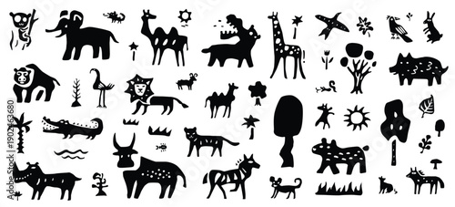 Fototapeta premium jungle africa wild animals graphic silhouettes vector design elements...
