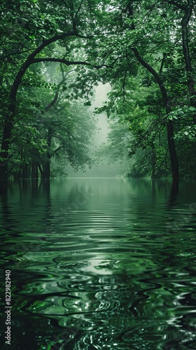 © Fokasu Art, Fototapeta premium Jungle river at twilight, dark green backdrop, ample room for text above