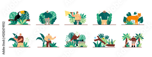 © roundsquid, Naklejka premium Jungle set illustration. Flat vector illustration concept.
