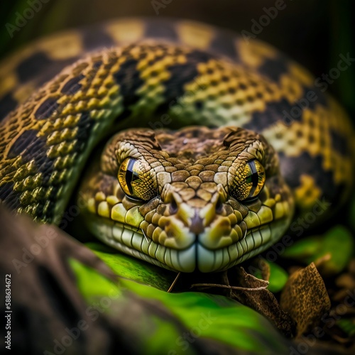 Obraz premium Jungle Snake Coiled Around Tree(made by AI)