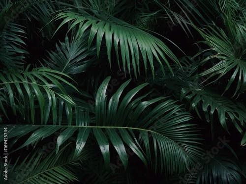 Obraz premium jungle thicket with dark green monstera fern as background