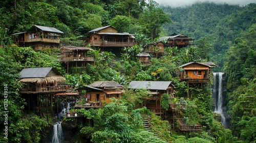 © Melius, Obraz premium Jungle Village Waterfall Homes
