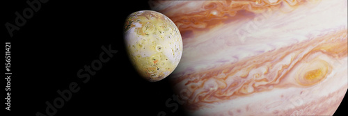 Fototapeta premium Jupiter's moon Io in front of the planet Jupiter