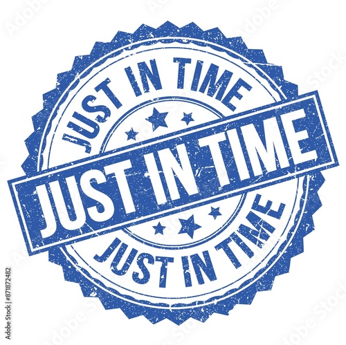 Fototapeta premium JUST IN TIME text on blue round stamp sign