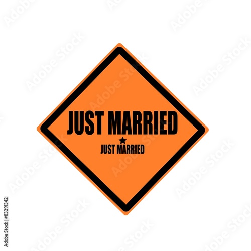 © fordzolo, Obraz premium JUST MARRIED black stamp text on orange background