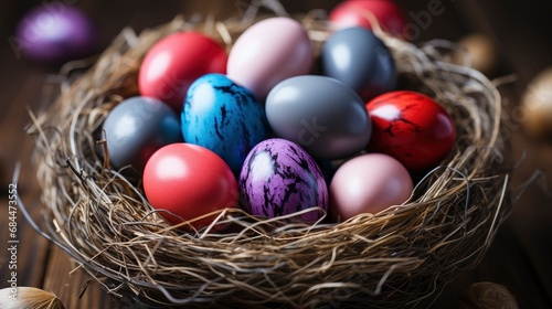Fototapeta premium Just Painted Colorful Easter Eggs Nest , Background HD, Illustrations