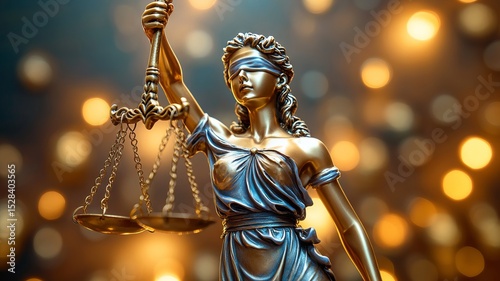 Fototapeta premium Justice and balance depiction with goddess vereneyo holding scales, symbolizing fairness and equality in abstract light background
