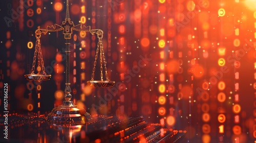 © IMG visuals AI, Obraz premium Justice scale with binary code strokes image copy space, ai generated