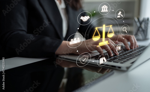 Obraz premium Justice system ensures legal governance and fairness. Justice system protects...