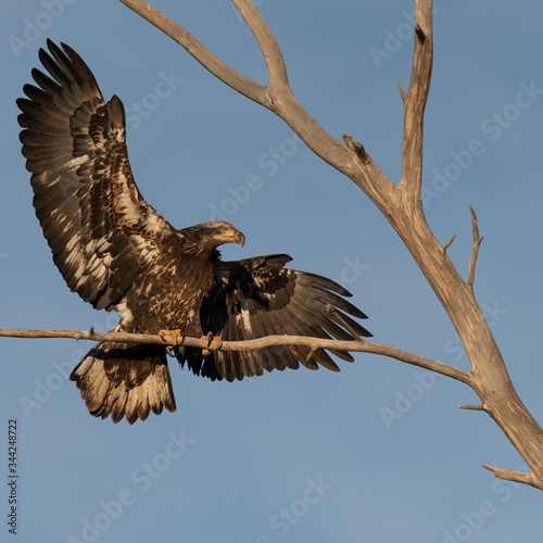 © Andrew, Fototapeta premium Juvenile bald eagle perching in Boulder, Colorado