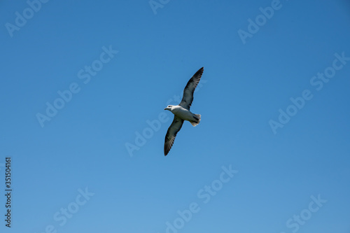 Obraz premium Juvenile Fulmar bird soaring above the sea in Cornwall UK