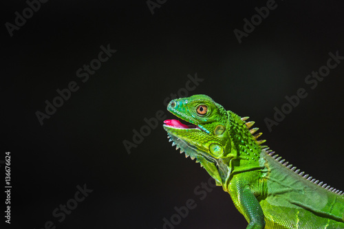 © Jason Wells, Naklejka premium Juvenile Green Iguana basking