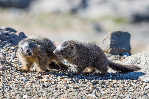 © Gary, Naklejka premium Juvenile Marmots Playing Near the Summit of Mt. Evans, Colorado