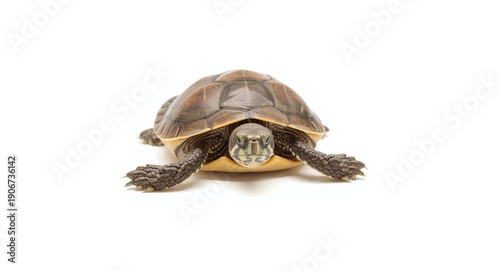 Obraz premium juvenile turtle positioned on a flat white background offering full view