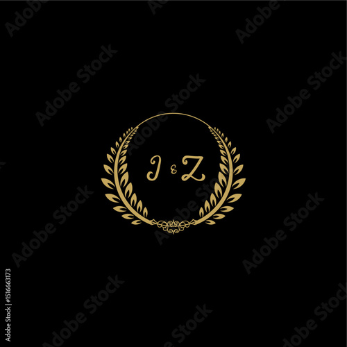 © desi, Fototapeta premium JZ beautiful, feminine and elegant wedding monogram initial logo with circle floral gold