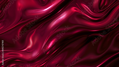 © Prasanth, Fototapeta premium 4k Amazing abstract maroon curved silk texture. 3d banner dark royal red color. Oil marble trendy dynamic art with glowing effect. Wavy fluid modern deluxe background. Passion lovely banner. Romantic