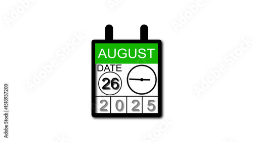 Naklejka premium 4K calendar animation August date 26 2025 illustration . black background clean and stunning 4k illustration .