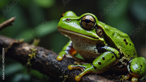 © Dionysius, Fototapeta premium 4k close up macro green frog in the forest