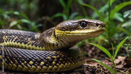 Fototapeta premium 4k close up snake in the forest junggle rock. python snake.