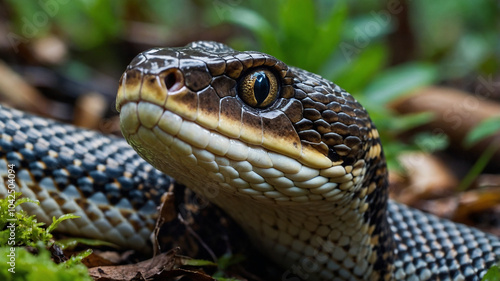 © Dionysius, Fototapeta premium 4k close up snake in the forest junggle rock. python snake.