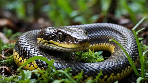 © Dionysius, Obraz premium 4k close up snake in the forest junggle rock. python snake.