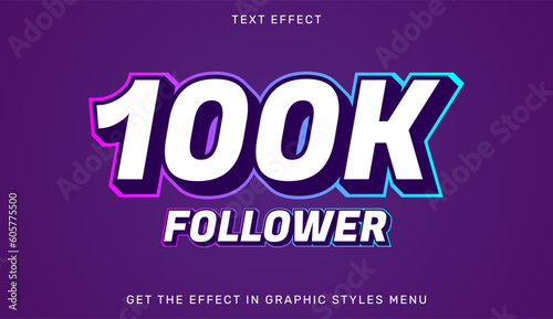 Obraz premium 100K follower editable text effect in 3d style. Suitable for brand or...