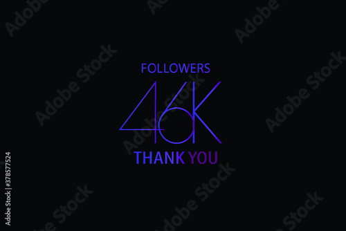 Obraz premium 46K, 46.000 Followers Luxury Black Purple Thank you anniversary, minimalist logo, jubilee on black background for Social Media - Vector