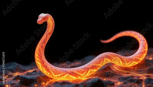 Obraz premium 4K HD Wallpapers Abstract Glowing Snake With Fractal Skin, Slithering Across A Dark Glowing Terrain. Desktop Wallpaper HD. HD Backgrounds