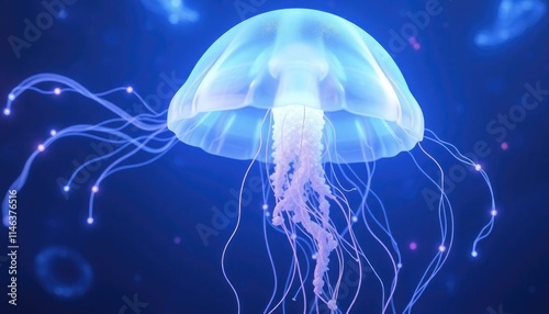 © VisualPro, Fototapeta premium 4K HD Wallpapers Ethereal Jellyfish Drifting Through A Cosmic Void With Glowing Tendrils. Desktop Wallpaper HD. HD Backgrounds