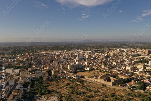 © Aina, Fototapeta premium 4k Inca Poble Mallorca town Sant Bartolomeu Parroquia Old Arquitecture aerial view