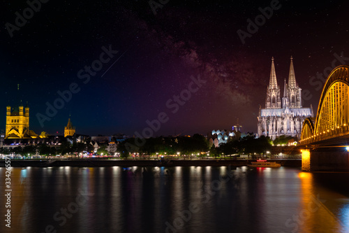 © Denis, Fototapeta premium Köln Hohenzollernbrücke Kölner Dom mit Milchstraße