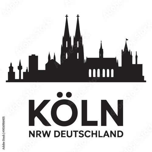 Fototapeta premium KÖLN NRW Deutschland City Skyline Vector Black silhouettes. with white...