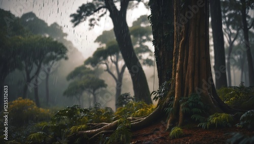 © lorav, Fototapeta premium 4k raindrop with forest wallpaper