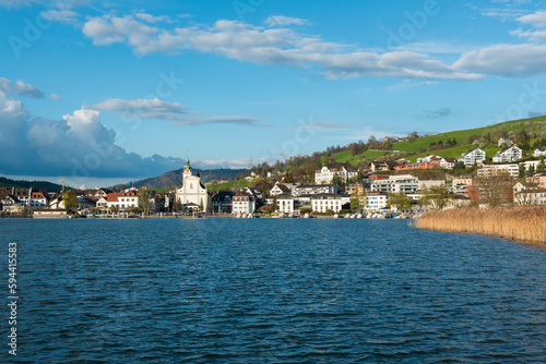 © Stefan, Fototapeta premium Küssnacht am Rigi view over the village with church Switzerland